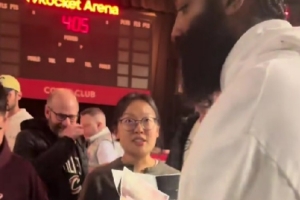 賽后,哈登給遠道而來的上海球迷送上了簽名。
