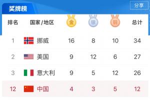 冬奧會(huì)最新獎(jiǎng)牌榜: