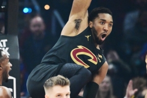 騎士球星米切爾上半場頻繁沖殺內線砍分,他出戰15分半鐘,9投3中(三分3中1)、罰球9中8,砍下15分1助攻2搶斷,有2次失誤,正負值-3。