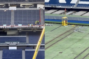 皇馬已正式批準在球場三層看臺安裝全新的LED電子環屏,目前相關施工已經開始。本周,工程人員已著手拆除球場西側三層看臺的結構面板,這是整個安裝工程的第一步,預計全部工程將耗時數月。