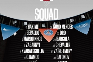 前鋒:7-克瓦拉茨赫利亞、9-貢薩洛·拉莫斯、14-杜埃、29-巴爾科拉、49-姆巴耶