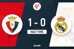第38分鐘,布迪米爾主罰點球,這球角度并不刁鉆,但庫爾圖瓦猜錯方向,布迪米爾點球打進,奧薩蘇納1-0皇馬。↓