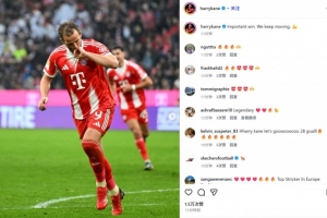 凱恩也在賽后通過社媒曬出自己進球后的慶祝照,并配文:“重要的勝利,我們繼續前進!”