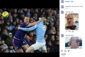 哈蘭德也在賽后通過社媒曬出自己和丹·伯恩互相拉扯的貼身肉搏照,并幽默調侃:“辦公室里的又一天。”
