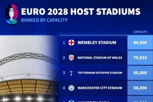 體育資訊11月13日訊 2028年歐洲杯承辦球場公布,德國轉會市場列出了各球場容量排名。