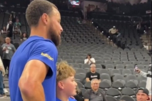 GIF-獨腿小球迷稱庫里是自己最喜歡的球員 庫里暖心合影+給球迷的假肢簽名