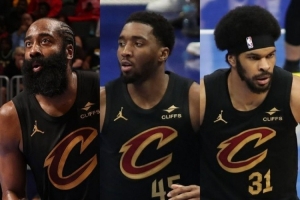 體育資訊2月22日訊 騎士媒體@TheCavsJack曬出了哈登、米切爾、阿倫同場時的相關數據。