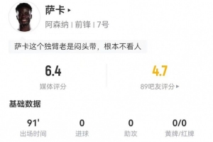 體育資訊2月23日訊 阿森納在本輪英超對陣熱刺,薩卡本場數(shù)據(jù)如下: