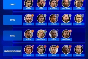 良好——姆伯莫(曼聯(lián))、賴因德斯(曼城)、埃斯特旺(切爾西)、多納魯馬(曼城)、格拉利什(埃弗頓)