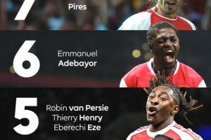 專治熱刺!埃澤只踢過兩場北倫敦德比,卻已經進了5球,在阿森納歷史上,只有兩名球員在北倫敦德比的進球比他多↓