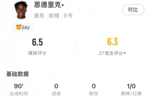 體育資訊2月23日訊 在北京時間今天凌晨結束的法甲比賽,里昂客場1-3不敵斯特拉斯堡,被皇馬外租至里昂的恩德里克本場比賽表現不佳,最終僅獲得了6.5分的評分。