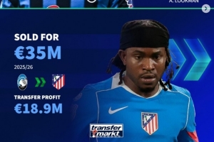 盧克曼:1610萬從萊比錫引進(jìn),3500萬出售給馬競。盈利1890萬