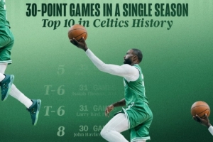 據(jù)統(tǒng)計,這是他本賽季第28次得分30+,闖進凱爾特人隊史單賽季30+場次前十,追平塔圖姆上賽季和2021-22賽季的紀(jì)錄。