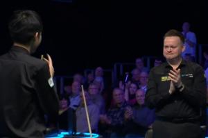 比賽進(jìn)行到最后一顆黑球時(shí),墨菲早早站起準(zhǔn)備為常冰玉鼓掌,握手后與全場(chǎng)觀眾一樣,長(zhǎng)時(shí)間為常冰玉的精彩表現(xiàn)鼓掌!