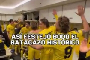 博德閃耀教練和球員賽后在更衣室慶祝晉級,他們拍打桌子和更衣柜,以特有的方式慶祝,更衣室內(nèi)氣氛熱烈。