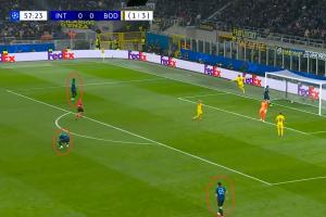 本場(chǎng)比賽第58分鐘,阿坎吉后場(chǎng)巨大失誤回傳送禮,海于格破門(mén)。失誤之后,國(guó)米防線全員直接呆住了,只有澤林斯基回追。被進(jìn)球后,阿坎吉捶地懊惱,非常郁悶。