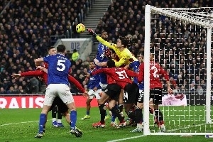 希爾·迪金森球場(chǎng)終場(chǎng)哨響,埃弗頓的最后一次傳中被一群藍(lán)色球衣淹沒,而有一人又一次在混亂中脫穎而出:曼聯(lián)門將拉門斯。