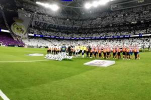 據(jù)悉,當(dāng)球員屆時(shí)入場(chǎng)時(shí),伯納烏看臺(tái)將展示出由觀眾席拼出的馬賽克圖案,上面將呈現(xiàn)出兩則標(biāo)語:“向種族主義說不”以及“尊重”("No al racismo" y "Respect")。