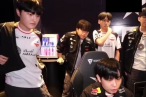 從轉播鏡頭可以看到,Keria站著有一點吃力,需要用手撐著桌子。