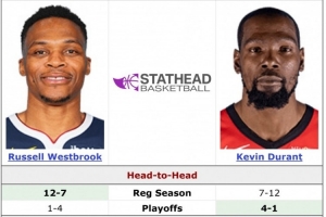 這將是杜蘭特和威少生涯第20次在常規賽交鋒,此前杜蘭特7勝12負落下風,季后賽杜蘭特4勝1負。