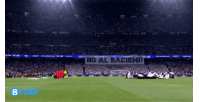 體育資訊02月26日訊 歐冠1/8決賽附加賽首回合,皇家馬德里客戰(zhàn)本菲卡,賽前,皇馬球迷在伯納烏拉起橫幅,反對種族歧視。