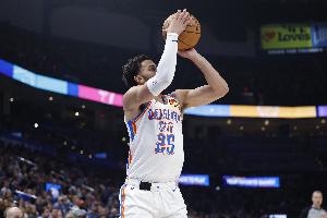 上半場比賽,雷霆球員阿杰伊·米切爾穩定發揮,攻防兩端都表現不錯,他出戰15分鐘,11中5,三分4中1,罰球1中1拿到12分2籃板2助攻2搶斷,正負值+18。