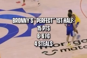 詹姆斯轉發了布朗尼在G聯盟南灣湖人隊半場6中6得到15分4搶斷的集錦,并寫道:“繼續積累日子,年輕的????@布朗尼”