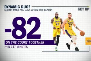 當詹姆斯與東契奇同場時,他們的正負值是湖人全隊本賽季任一雙人組里最差的負82;