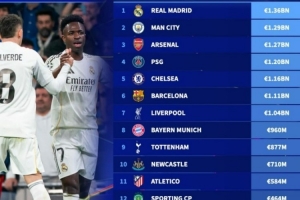 體育資訊2月26日訊 本賽季歐冠16強全部產(chǎn)生,德轉(zhuǎn)也盤點了16強球隊身價榜,具體如下: