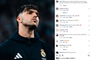 本場比賽阿森西奧與隊友卡馬文加相撞受傷離場,賽后球員也在社媒發(fā)文報平安寫道:“感謝大家的鼓勵信息!這只是虛驚一場,讓我們一起迎接下一輪比賽,皇馬加油!”