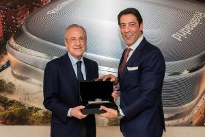 據皇馬官方介紹,互贈禮物儀式在伯納烏的皇馬主席包廂進行。