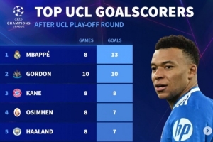 體育資訊2月26日訊 歐冠淘汰賽附加賽已經(jīng)完賽,《轉(zhuǎn)會(huì)市場(chǎng)》也統(tǒng)計(jì)了本賽季歐冠射手榜,姆巴佩居首。