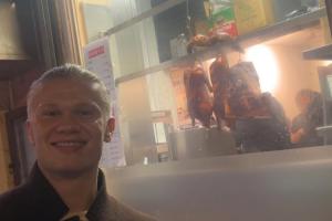 哈蘭德現身曼城一家餐廳,點了一份包含鴨肉和豬肉在內的烤肉。哈蘭德的到來讓這家店員們都驚訝不已。