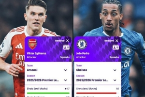 體育資訊2月27日訊 下一輪英超將迎來焦點戰阿森納對陣切爾西,數據網站Squawka也對比了兩隊前鋒約克雷斯、若昂·佩德羅本賽季英超數據對比(每90分鐘數據):