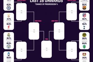 體育資訊02月27日訊 OPTA超算對歐冠1/8決賽進(jìn)行了10000次模擬,各組對陣晉級概率如下。