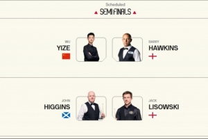 體育資訊2月28日訊 2026斯諾克威爾士公開賽半決賽對陣出爐,吳宜澤將戰霍金斯。