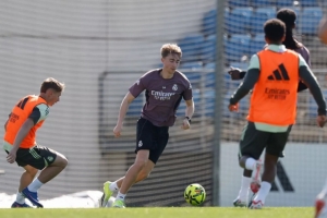 皇馬官方指出全隊正在訓練基地繼續備戰西甲聯賽第26輪對陣赫塔費的比賽,而從訓練照也可以看出,此前因傷缺席歐冠的赫伊森已經傷愈并參與合練。