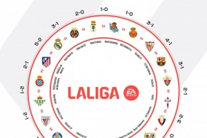 體育資訊11月13日訊 西甲官方更新社媒動(dòng)態(tài),曬出本賽季各隊(duì)勝負(fù)閉環(huán)圖片。