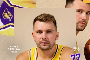湖人官方言簡意賅的寫道:“生日快樂,盧卡?。℉APPY BIRTHDAY, LUKA ??)”