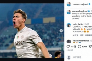 在社交媒體上,那不勒斯進球功臣霍伊倫調侃道:為那些第3分鐘看球,然后在第95分鐘離開的球迷感到遺憾。
