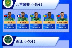 浙江(5):盧卡斯、米特里策、樸鎮燮、托利奇、瓜里拉帕
