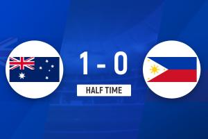 上半場補時1分鐘,澳大利亞女足1-0菲律賓女足。