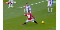 比賽第36分鐘,達洛特拼搶中踩中鐮田大地腳面,被主裁判出示黃牌警告。場上比分曼聯0-1水晶宮。