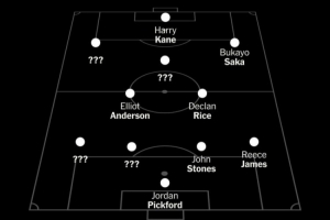 其中,皮克福德將是主力門將,里斯·詹姆斯是主力右后衛,斯通斯確定一個首發中衛位置;中場位置確定了賴斯、埃利奧特·安德森兩個首發;前鋒位置凱恩、薩卡穩坐首發。