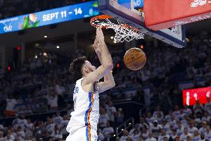 本場比賽,雷霆內線霍姆格倫表現出色,攻防兩端都打出影響力,首發出戰28分鐘,投籃14中8,三分球5中1,罰球2中2,拿到19分9籃板(4前場籃板)1助攻2搶斷2蓋帽的數據,正負值+13。
