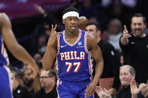 本場比賽,76人探花埃奇庫姆出場40分鐘21投8中,三分11中5、罰球3中2拿到23分5籃板3助攻2搶斷1蓋帽,正負值-14。