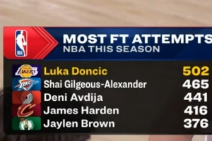 湖人主場迎戰(zhàn)國王,東契奇賽季罰球數來到500個,聯(lián)盟首人。