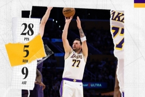 賽后,湖人官方發布東契奇本場數據海報,并寫道:“盧卡的輕量工作。”