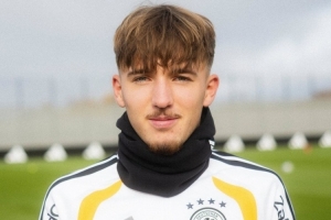 卡爾獲得德國(guó)足協(xié)頒發(fā)的弗里茨·瓦爾特銀質(zhì)獎(jiǎng)?wù)拢萑使俜缴缑綍癯鲞@位小將展示獎(jiǎng)?wù)碌恼掌瑢?duì)他表示祝賀。