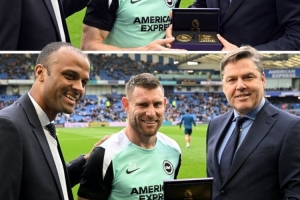 聯賽第28輪布萊頓對陣諾丁漢森林賽前,英超官方為其頒發了歷史出場次數最多的球員獎。